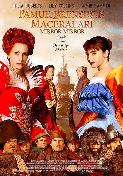 今年度會有兩部對於白雪公主故事重新詮釋的電影,"魔鏡魔鏡"(Mirror, Mirror, 2012)是其中之一,由"戰神世紀"(Immortals, 2011)導演塔森辛執導,茱莉亞羅勃茲飾演壞皇后,"攻其不備"莉莉柯林斯飾演白雪公主,至於王子的角色,則是由在"社群網戰"中飾演雙胞胎以及在"強艾德格"飾演得力助手的艾米漢墨詮釋,電影的風格走得比較魔幻,色彩也比較絢爛,故事調性屬於詼諧幽默的童話電影。