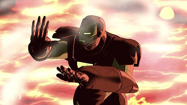 但可別以為這部動畫大同小異,不要忘了我剛剛形容這部動畫有"神鬼傳奇3"的風格,沒錯!東尼史塔克回到美國之後,中國古蹟這邊產生了大騷動,因為在挖掘的過程中,意外的喚醒了四大邪惡元素-土、火、水、空氣(明明就是金、木、水、火、土,哪來的這麼奇怪的四大元素組合啊?),這四大元素邪神開始尋找五個指環,為了喚醒沉睡的神龍以及古代殘暴的帝王,一旦帝王甦醒,他的陪葬土俑也將一併甦醒,唯一能擊敗這些元素邪神與帝王的人,就是穿著鐵甲衣的東尼史塔克,他能順利阻止暴君的甦醒嗎?