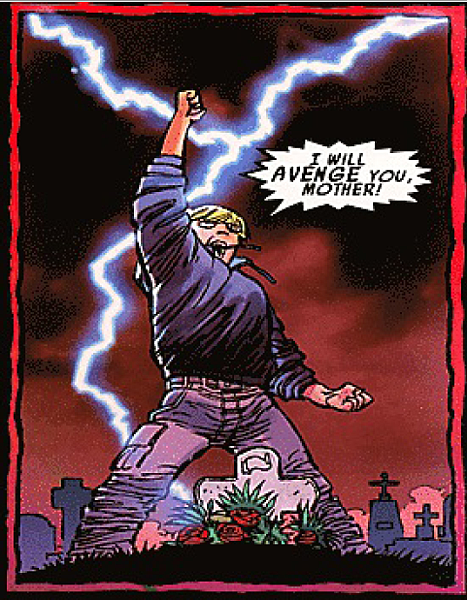 剛剛提到了戴夫的媽媽,電影中只出現了幾秒鐘,但是漫畫中,他媽媽的靈魂還曾經在戴夫住院的時候顯靈......